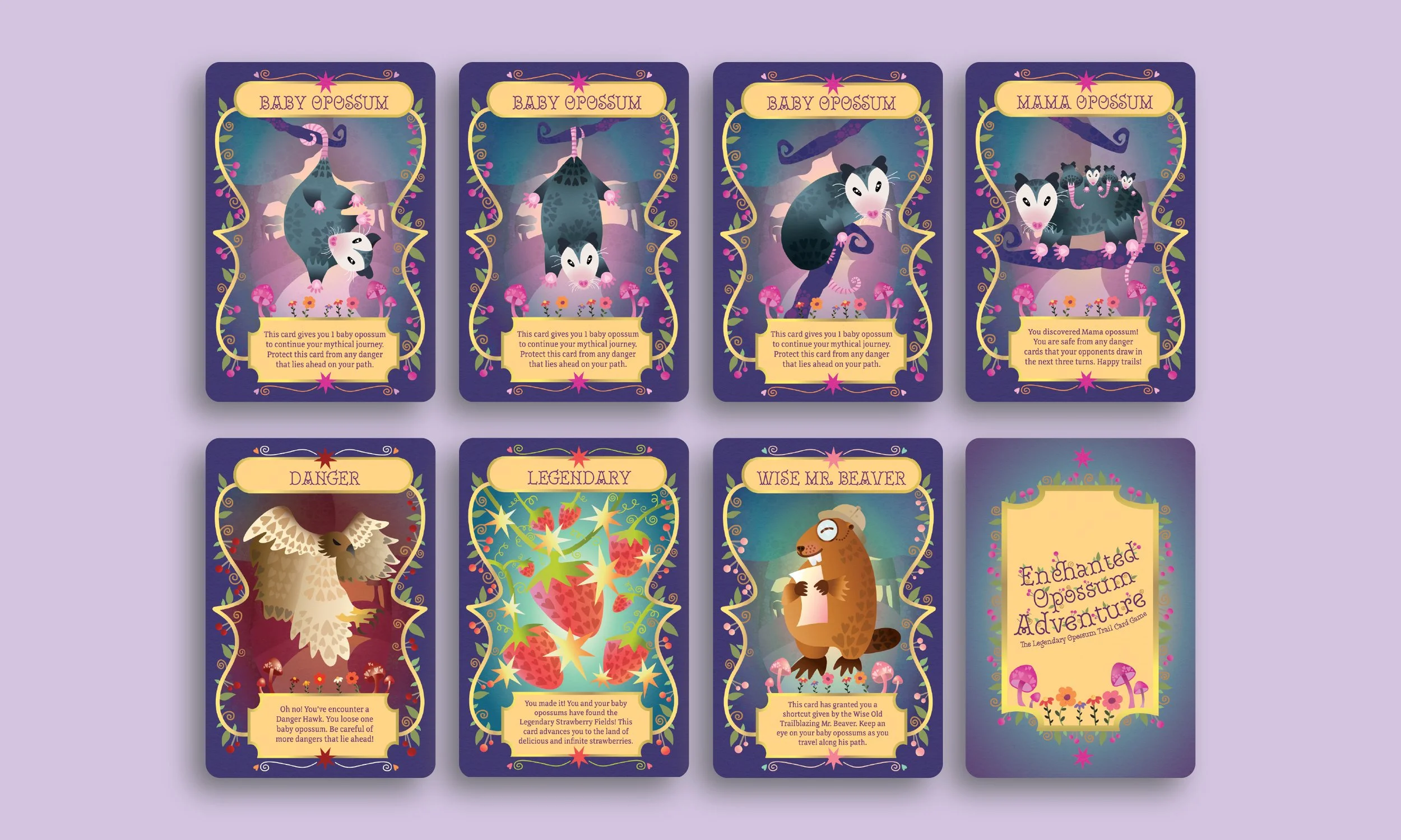 Enchanted Opossum Adventure is a card game that invites players on a whimsical journey with a mother opossum and her babies as they search for the legendary strawberry fields—an endless paradise of sweet, juicy strawberries. Featuring all-original, heartwarming illustrations, this game blends fun, adventure, and irresistible cuteness for an enchanting and immersive experience.